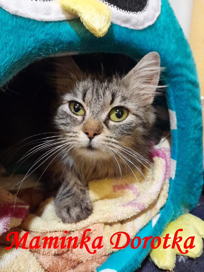 Přijata kočička Dorotka z Prahy východ se svými třemi koťátky Miládkou, Apolenkou a Bedříškem.