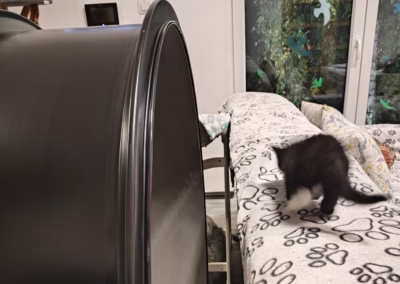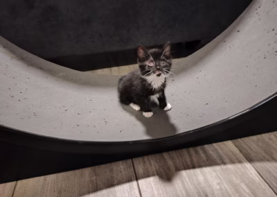 Náš nejmenší „kolista“ Kamilka 🩷 ze Strašeckého depozita pro kočky si obhlíží kolo od firmy CatROUND, které jsme sem do útulku dostali přímo od kluků výrobců a náhodou, nebýt já pomalá, tak jsem vám i natočila, že s ním Kamča otočila! 😃😃