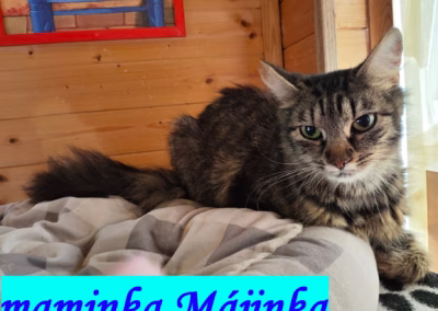 Májinka pochází z Rakovníka, kde porodila svá koťátka a odkud se trošku složitou cestou nakonec dostala k moc hodnému pánovi, který se o maminku i koťátka postarala a u kterého dosud měla Májinka s koťátky azyl. Ale sám má hodně kočiček o které se stará a je potřeba najít celé této rodince nové domovy. Já jsem Májinku tenkrát přijmout nemohla ale slíbila jsem pomoci a teď je načase slib vyplnit.