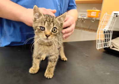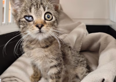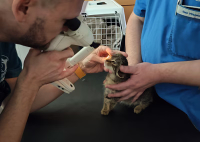 Malý Fanoušek má nemocné očko a tak ho prohlédla pan doktor MVDr. Boštička, specialista na očka. Já jsem si myslela, že to bude vypadat spíš špatně ale pan doktor není tak pesimistický jako já. Pokusí se s očkem něco udělat, asi nebude očko úplně jako to druhé, zdravé, ale mohlo by na nás vykouknout. Operaci má Fanoušek určenou na 20.11.2025 a do té doby se musí jednak zbavit parazitů, protože z něj vylezla hnusná škrkavka a jednak musí přibrat, aby byl na operaci silný.