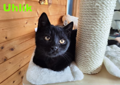 Chlapeček dostal jméno Uhlík a je moc hodný a mazlivý. Sestřičky jsou trošku potvůrky ale krásné jsou také. Jedna holčička dostala jméno Sazička a druhá Uhlička.