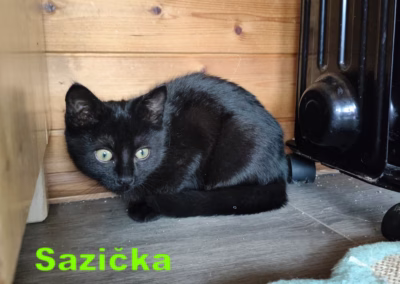 Do Strašeckého depozita pro kočky byla přijata další tři černá koťátka z Lišan na Rakovnicku. Pět koťátek s maminkou se tam usídlilo u krmeného místa. O celou rodinku se provizorně postarala maminka naší dočasky Katky. Divoká maminka kočička byla již po kastraci vypuštěna zpět na místo. První jsme přijali brášky Sazínka a Blackouška. Oba dva již našli společný domov. Nyní vám představujeme zbytek černého komanda.