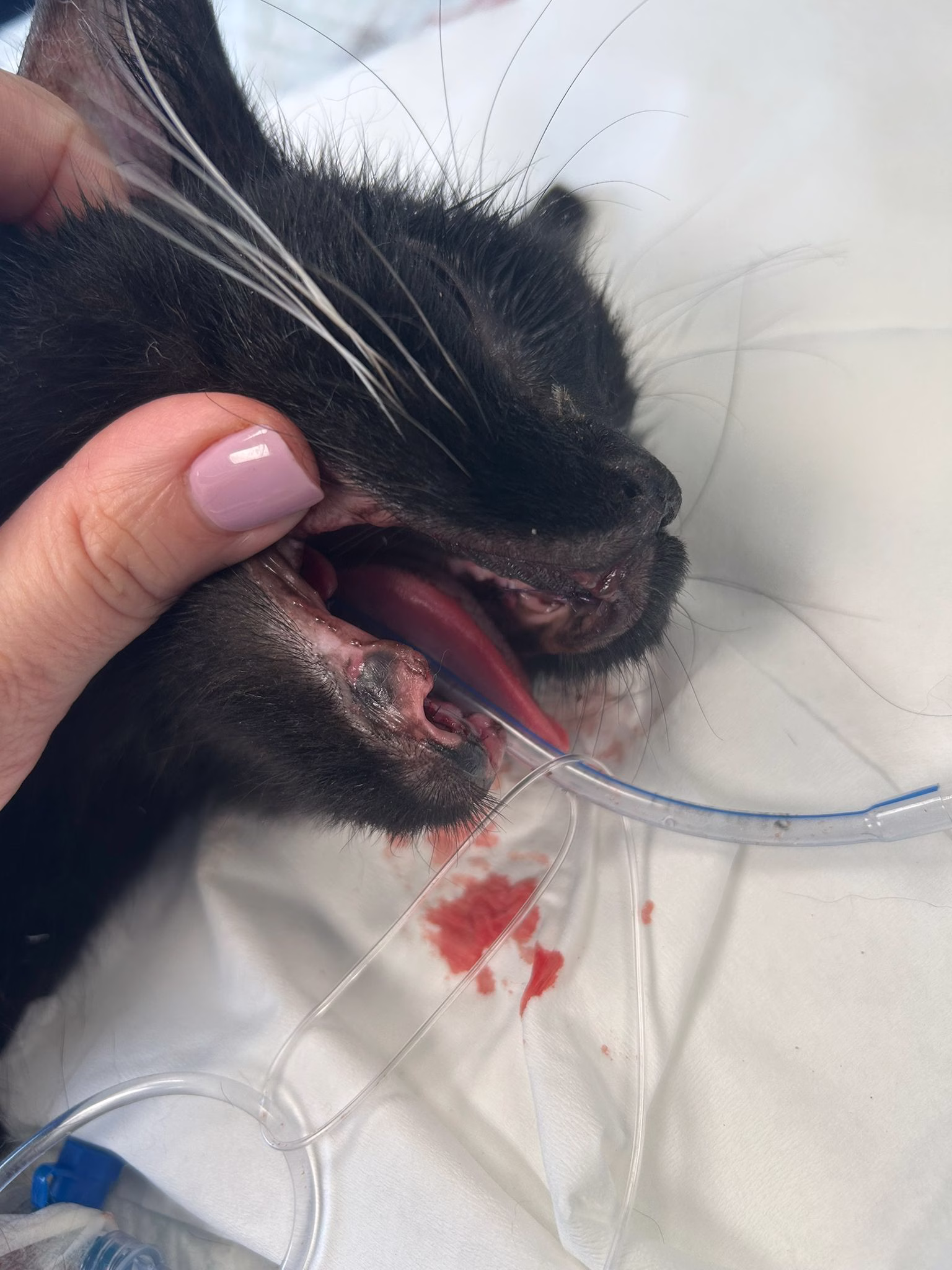 Holčička nám začala slintat, přestala se mýt a tekla jí očička. Protože Rudlinka je jedna z našich plašanek, byl to boj ji chytit a transportovat na vyšetření a na operaci na kliniku. No ale nedalo se nic dělat. 🙏