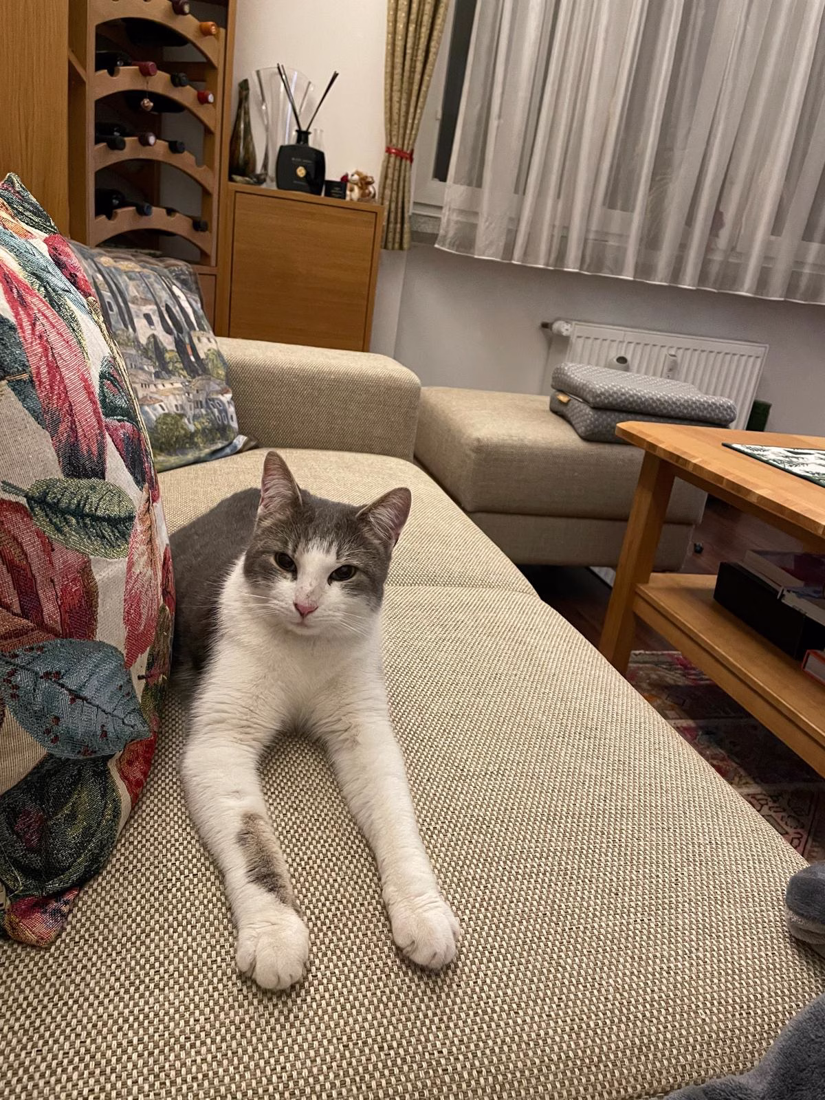 Bobešek je mazlivý kocourek a jeho kamarád Sobriňo je zase trochu plašší kocourek. No a tak to dopadlo zatím dle očekávání, Bobešek je na sedačce a Sobriňo za sedačkou. 😀🙈🩵