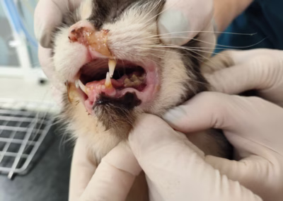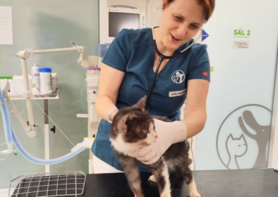 S Evelínkou jsem okamžitě musela jet na veterinu, bála jsem se něco nechat do rána. Evelínka má v těle obrovský zánět, což jí vyšlo v rozboru krve. Ale opravdu to není legrace, protože Evelínka má nález na plicích, doslova jí hnijí zoubky a opravdu strašně páchne. Také má zánět v ouškách, odkud jí také vytéká páchnoucí hnis, který má olepený okolo. Divím se, že vůbec něco jí, protože nosánek má plný husté rýmy a chrčí to v ní hrozně… Nyní má Evelínka nasazena silná antibiotika, ouška se musí kapat a nosánek také. Až to jen trochu půjde, zkažené zoubky musí pryč, takže toho má holčička naloženo hodně…
