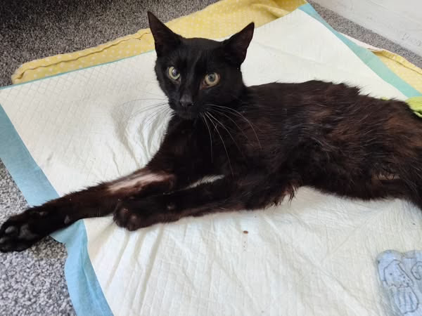 Prokůpek byl přijat před dvěma týdny ze Mšece na Rakovnicku. Kocourek byl nalezen na zahradě jednoho domu. Ležel bezmocně na zemi, nemohl se zvednout a na první pohled byl abnormálně vyhublý. Prokůpek prožil nějaký úraz a původně jsme mysleli na autoúraz ale po vyšetřeních to spíš vypadá, že ho něco chytlo za hřbet, pes nebo liška… těžko říct…